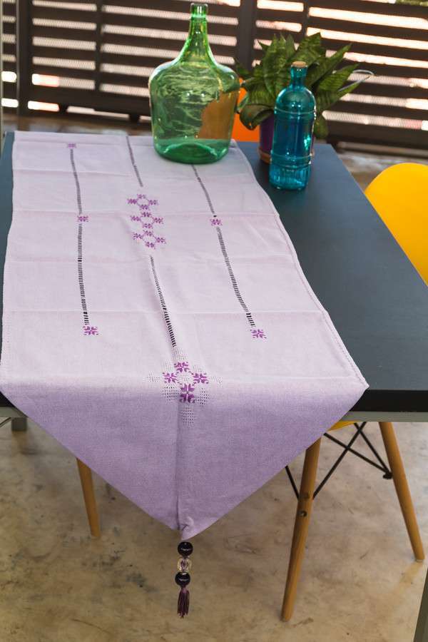 At a generous length of one meter, our Ao Poi Runner gracefully drapes across your table, adding a touch of refinement to your home. The soft, powdery lavender color evokes a sense of tranquility and serenity, creating a serene atmosphere for your guests to enjoy.